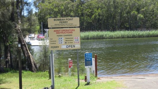 und fahren schweren Herzens weiter. Bei Bombah Point gilt es wieder einmal einen Bach zu überqueren, aber dank der Ferry und AUD6,5/Auto aus der Haushaltskasse ist das kein Problem.