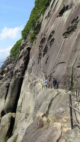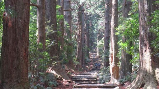 einer Reihe von 12 verwitternden Felsen im Meer, ähnlich den 12 Apostels an der GOR. Bei Nachi steigen wir auf einem alten Pilgerweg durch einen über 800 Jahre alten Zypressenwald gute 270hm, gute 1500 Stufen den Berg hinauf