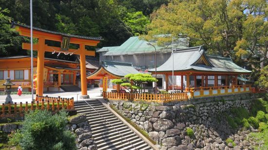 und fahren dann weiter nach Shingu, zum Kumano Hayatama Taisha, dem Endpunkt des ca. 1200 Jahre alten Pilgerpfades Kumano Kodo, der einst kaiserlichen Pilgerreise.