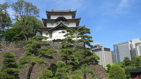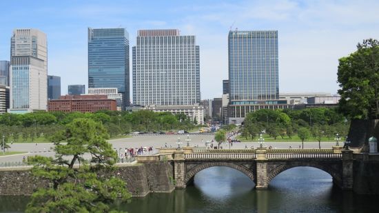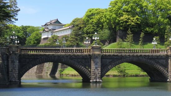 Wir wandern eine breite Strasse entlang bis zum Imperial Palace, den wir heute gerne besichtigen wollen, aber wir immer natürlich wie immer keine Reservierung dafür gemacht haben. Kurzes Plaudern mit den Wächtern – und ja, es gibt noch ‚genügend‘ freie Tickets, die ab 12h hier verteilt werden. Brechen wir also erst mal zur Besichtigung der Aussenanlagen auf, bestaunen die Nijubashi Brücke, über die die offizielle Einfahrt in den Palast führt