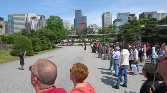 Normalerweise wird zweimal täglich eine Gruppe von maximal 250 Touristen von einem nur japanisch sprechenden Führer hier durchgeschleust. Entweder wurde dies mittlerweile geändert oder aber wird versucht dem erhöhten Ansturm wegen der ‚Golden Week‘ gerecht zu werden, auf jeden Fall werden heute 2 Gruppen mit jeweils max. 250 in die Palast-Anlage gelassen, eine Gruppe ‚nur Japaner‘ und eine weitere Gruppe ‚Ausländer‘,
