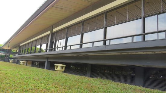 wir gehen mal kurz hoch auf den Balkon wo die Plätze etwas günstiger gewesen wären, (ab JPY 16.000 für 2 Karten),