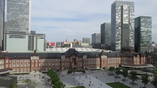 Zurück an der Tokyo Train Station geht es gegenüber ins alte Postamt, von dessen Aussichtsterrasse im 7. Stock man von droben auf den Bahnhof blicken kann.