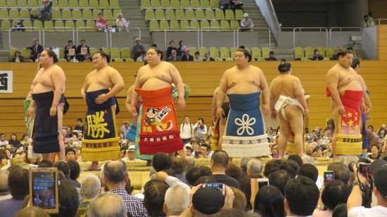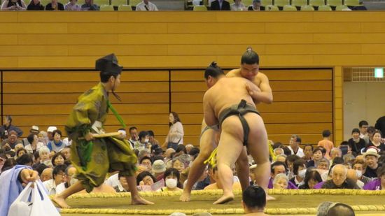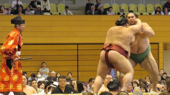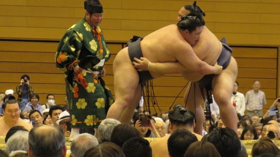 Zwischendurch dann Gesangseinlagen, traditionelle Sumo-Ringer-Lieder werden zum Besten gegeben,