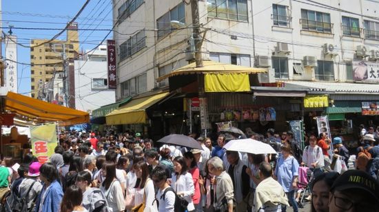 bevor wir uns durch das Gedränge am Tsukiji Outer Market schieben lassen.