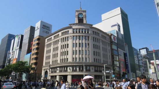 Mit leichter Verspätung fahren wir auf bekannten Wegen zum Hauptbahnhof, dort wird ein U-Bahn 24 Std. Ticket gekauft (JPY 600) und zum Stadtteil Ginza gefahren. Gegenüber dem Ausgang der U-Bahn den Tsukiji Hongwanji Tempel besucht, ein im indischen Stil erbauter buddhistischer Tempel,