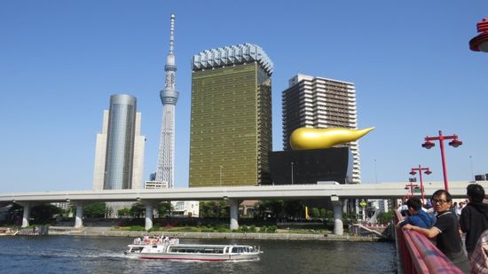 In Asakusa die Riverfront entlang und dieses Kunstwerk (Sperma??) auf der Asahi Brauerei bewundert,