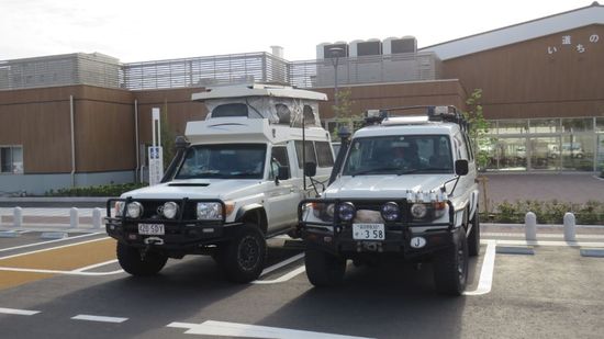 und dann taucht Yoshi auf, stellt sich vor, zeigt uns Bilder von seinem Australien Aufenthalt vor ein paar Jahren, wir kommen ins Plaudern, fachsimpeln,…Ich frage ihn, wo er seine Windabweiser gekauft hat – und erfahre, dass die zwar von Toyota sind, aber nicht mehr hergestellt, vertrieben werden – muss ich halt weiter ohne rumfahren – aber nur bis zum nächsten Morgen, Yoshi hat doch tatsächlich die seinen abgebaut – und an SL3 befestigt, er braucht sie nicht so dringend und findet schon eine Lösung, hat eine kleine Firma, kann da irgendwas anpassen,… was soll man dazu noch sagen? Wir sind sprachlos, dankbar, verabschieden uns – und hoffen, dass er irgendwann mal wie geplant nach Europa kommt und wir ihm auch ‚was gutes‘ antun können.