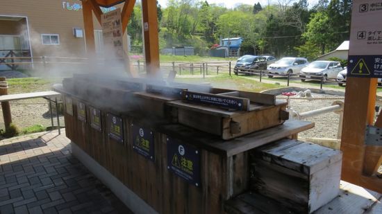 wo man sein Essen (aber nur, wenn man es im Laden nebenan erworben hat!!!) im Dampf eines Geysirs zubereiten kann. In Onuma Park ein Blick über den Kratersee auf den gegenüberliegenden, derzeit ruhenden Vulkan, ein beliebtes Wanderziel in dieser Gegend.