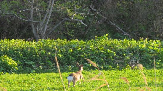 Noch schnell diesen fliehenden Hirsch am Strassenrand fotografiert,