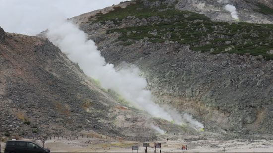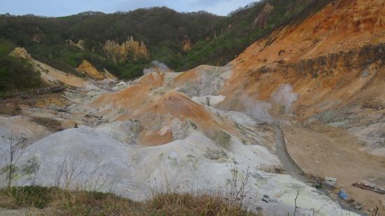 Nun noch runter nach Noboribetsu Onsen, einer Ansammlung von Edel-Heisswasser-Bade-Hotels, die von dem im Hell Valley sprudelnden Geysiren gespeist werden.