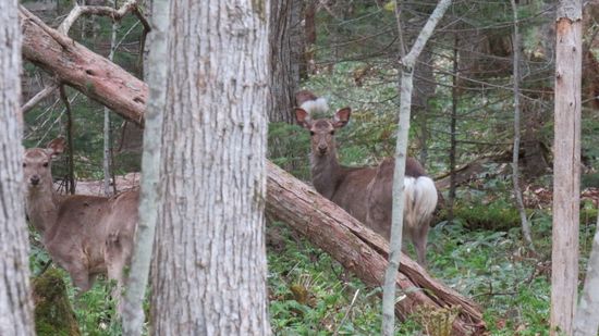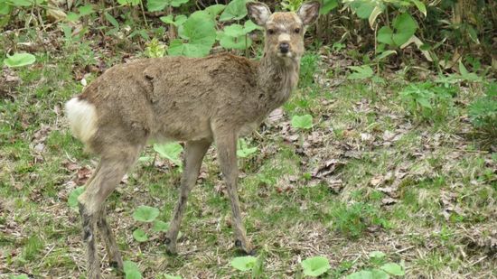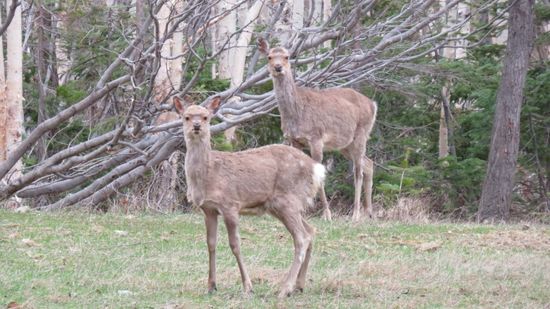 Entlang der Strasse sehen wir die hier einheimischen Hirsche,