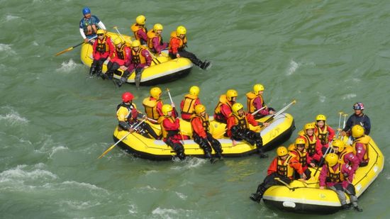 aber die haben Ihren Spass dabei, schwimmen auch mal kurz im Fluss,…