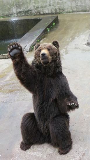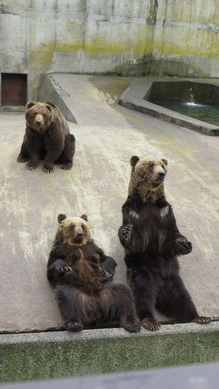 und beobachten die hier gehaltenen Japanischen Braunbären bei Ihrer Morgengymnastik, bei ihren Bettel-Übungen.