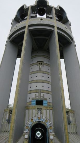 Droben auf einem Hügel die ‚Bell of Hope‘, die dreimal am Tag geläutet wird