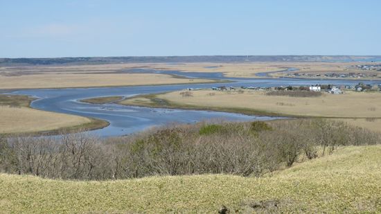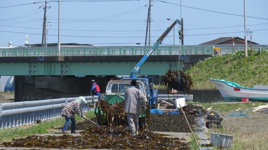 im Winter Durchzugsgebiet der Schwäne, jetzt im Frühling aber absolut ‚tote Hose‘. Dafür sind die Fischer hier mit der Kelp- (=Seetang) Ernte beschäftigt, ganze Straßenzüge,