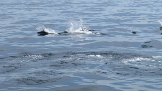 Das Boot fährt mit Höchstgeschwindigkeit dorthin, wir sind von Finnwalen umgeben,