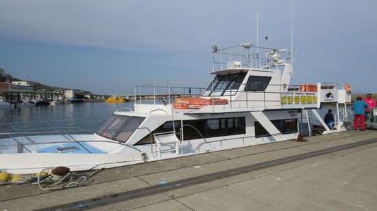 bevor wir dann Rausu erreichen, Eingangstor zum Shiretoko Nationalpark und zugleich Ausgangspunkt für ,Whale watching tours‘ (JPY 8.000pP). Hier mit dem Schwerpunkt Orcas (= Shamu, Killerwale) und Finnwales, nach den Blauwalen die zweitgrößten. Wir müssen natürlich mit,