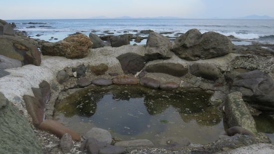 zwei kostenlose Thermalbecken am Meeresufer, noch hoch zum Kuma–no-yu