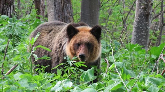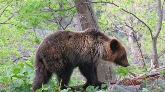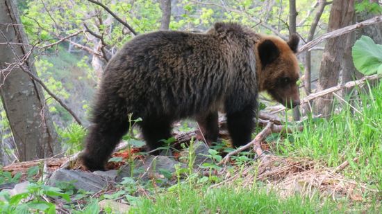 Weiter geht unsere Fahrt über Shari zu den Oshinkoshin Falls. Unser Navi ist der Meinung, dass diese Wasserfälle am besten von oben angeschaut werden müssen, jagt uns also eine steile, recht einsame Bergstrasse hoch – und dort begegnen wir unserem absoluten Highlight auf diesem Teil der Reise, einen Braun-Bären in freier Wildbahn, der vor uns die Strasse überquert, friedlich vor sich hin frisst,