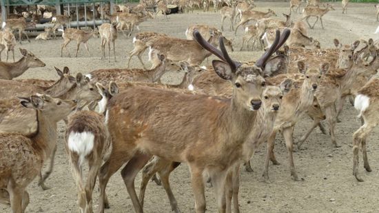 eine Hirsch-Farm am Strassenrand unter ‚jo mei‘