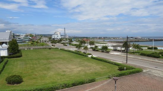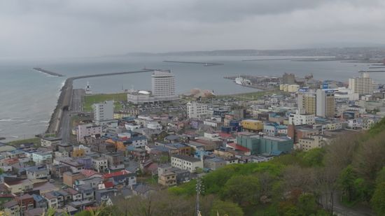 fahren hoch zum Wakkanai Park, suchen immer noch vergeblich im Nebel nach Sachalin und begnügen uns dann mit einem Blick runter auf die Stadt.
