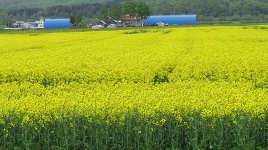 Auf dem weiteren Weg noch ein Abstecher zu einer Sonnenblumenfarm, aber da ist erst ab Ende Juni was zu sehen, wir müssen uns mit solchen gelb blühenden Rapsfeldern zufrieden geben.