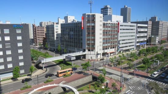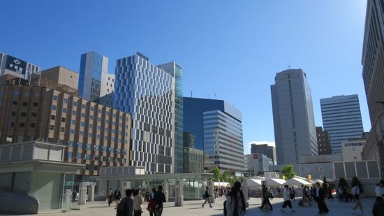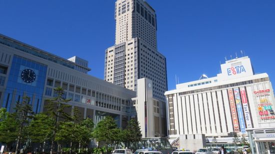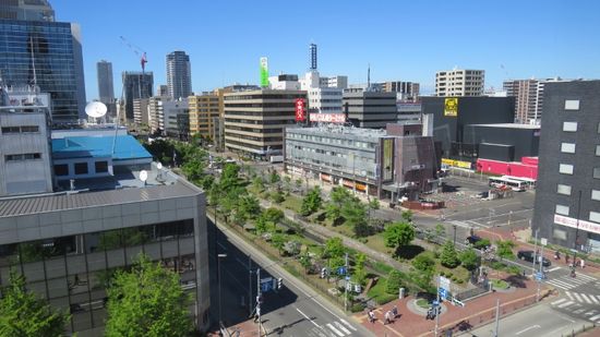 und der Bahnhof mit dem T38 (Hotel-)Gebäude, dessen Besuch der Aussichtsplattform im 38. Stock ebenfalls JPY 720 kostet