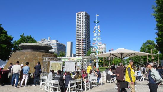 Erst stossen wir hier auf das Sapporo 60th Lilac Festival, mit Wine Garden,