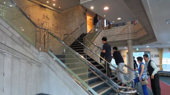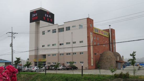 die meisten davon sind bereits zu Hause angekommen, wir paar Ausländer sind die letzten die von Bord dürfen und haben so keine Warteschlangen bei Immigration und Zoll. Wir gehen im Nieselregen durch die Stadt, vorbei an diesem Hotel mit Onsen,