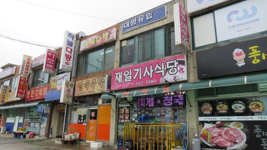 die See ist ruhig, der Wind eher kalt als frisch. Wir bleiben drinnen, stärken uns drei Mal am Tag am recht fantasielosen Buffet im Restaurant, das wir dank vor der Abfahrt warum auch immer erhaltener Coupons umsonst besuchen dürfen. Von Abwechslung haben die hier noch nichts gehört, im Wesentlichen Reis, frischer Eisbergsalat, ein Majo-basiertes Dressing, verschiedene Sorten von Kimchi =chilihaltiges koreanisches Sauerkraut, kalte!! Pommes und Mini-Bouletten, Fleischpflanzl wie wir im Süden dazu sagen neben Ketchup-Behältern, als Getränke dann noch Eiswasser, Heisswasser und ‚Orangenerfrischungsgetränk‘ – und dieses Setup steht jeweils um 7:00, 12:00 und 18:00 für etwa eine Stunde zur Verfügung.