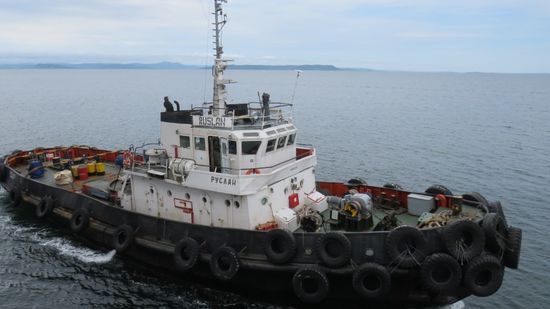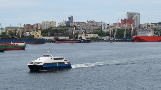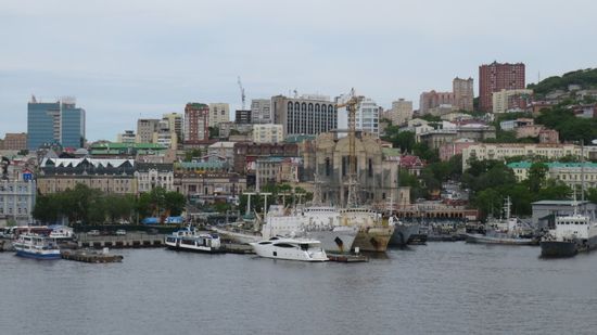 Wir kommen pünktlich um 14:00 in Vladivostok an, die Schleppboote warten schon darauf, uns ans Ufer schieben zu dürfen,