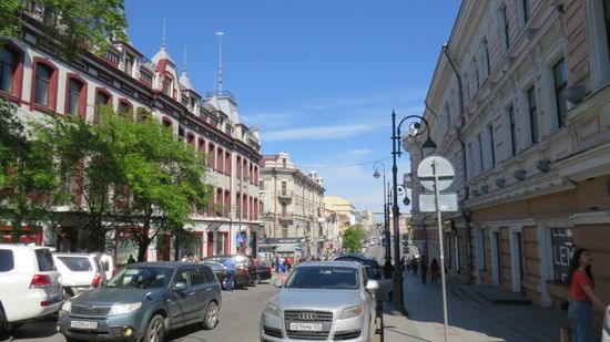 und gehen dann auf der Murvyova-Armurskogo, der Hauptgeschäftstraße entlang Richtung Fluss,