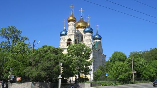 immer steil bergauf und bergab, vorbei an einer schönen orthodoxen Kirche