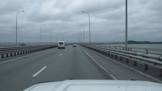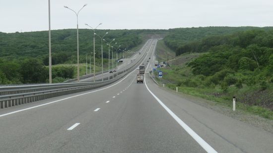 Unseren Versuch in Vladivostok den Morgenmarkt zu besuchen brechen wir nach 90 min vergeblicher Parkplatzsuche ab – gestern am Feiertag war der Markt geschlossen, da gab es freie Parkplätze in Hülle und Fülle – und verlassen die Stadt Richtung Norden. Auf einer niedrigen Brücke (Causeway) quer über einen See,