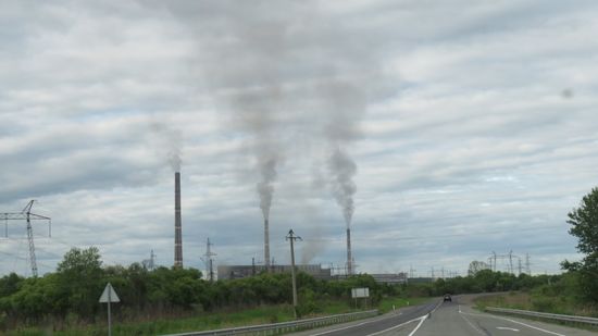 und durch zwei Baustellen erreichen wir ein Kohleabbaugebiet mit rauchenden Schloten.