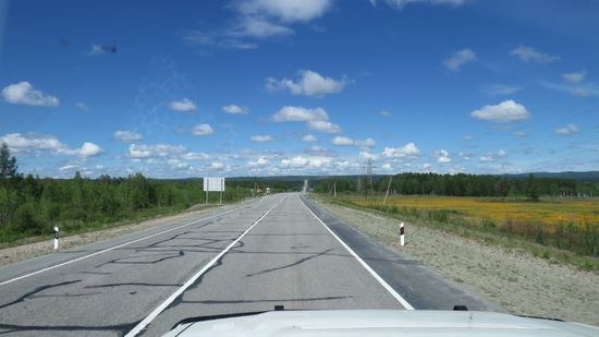 liegen doch auch so noch 1.000km bis Chita vor uns, von denen die ersten 600km erst mal wieder im Sumpfland, im Wald verlaufen.