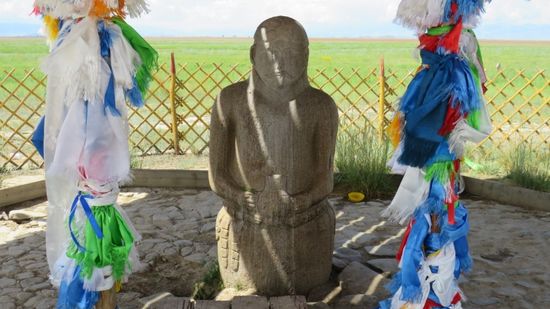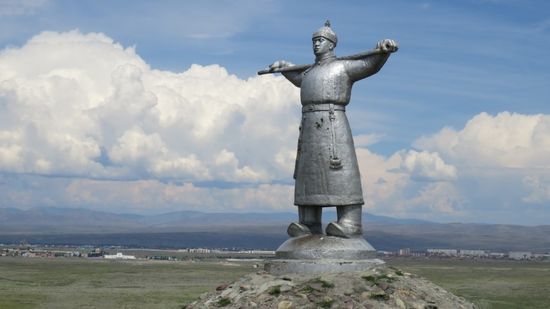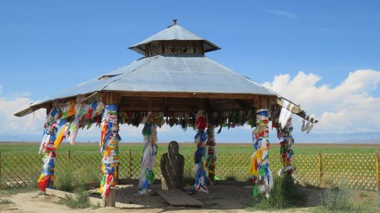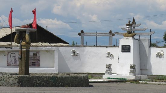 so ist auch Kyzyl-Mazhalyk schnell erreicht. 8km südlich von dem Ort dann, mitten im freien Feld eine Statue von Chinggis-Khan,