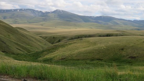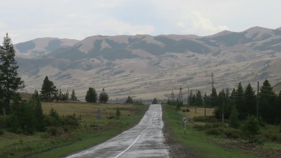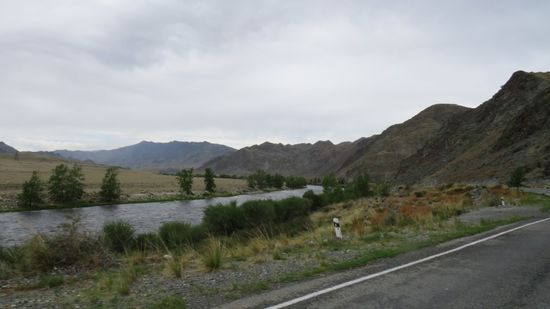 Schweren Herzens beschliessen wir, diese Fahrt abzubrechen und den 2.200km langen Weg in Kauf zu nehmen um Kosh-Agach zu erreichen. Das Bergpanorama hier immer noch wunderschön