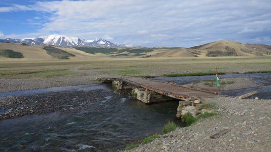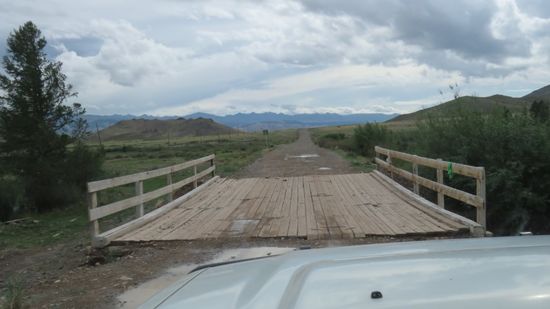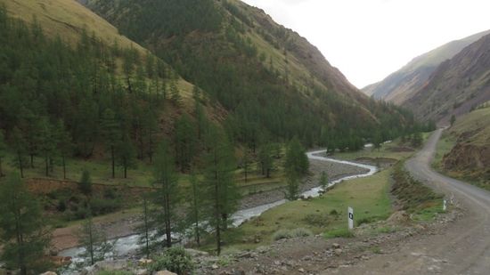 das Abenteur ‚auf einem ca. 400 km langen 4WD Track quer durch die Berge nach Kosh-Agach im Altai‘ kann beginnen. LP beschreibt diese Strecke als ‚gloriously but notorious tough truck track with many deep fords, impassable after rain‘. Nun, wo ein Truck durchkommt, da sollte i.a. auch ein Troopy durchkommen, Wasserdurchfahrten haben wir auf der Fahrt nach Cape York schon ausreichend geübt und ‚aussen herum‘ sind es gute 1500km, wir wollen es wagen. Der Piste selbst zu unserer grossen Überraschung neu mit einer Mischung aus Sand, Lehm und relativ groben und wie zahlreiche Relikte am Strassenrand zeigen, reifenmordenden Steinen neu aufgeschottert, über die zahlreichen Bäche führen jetzt ausnahmslos Brücken,