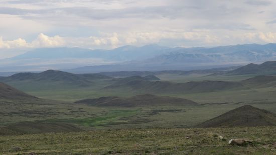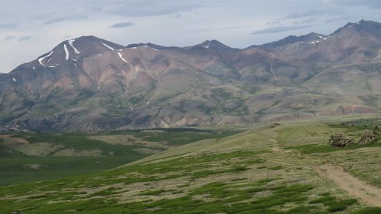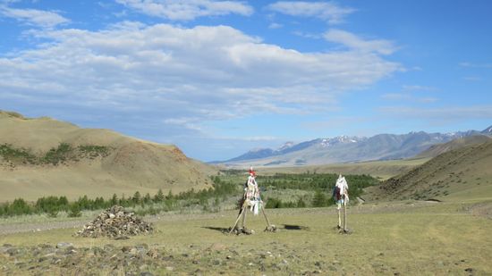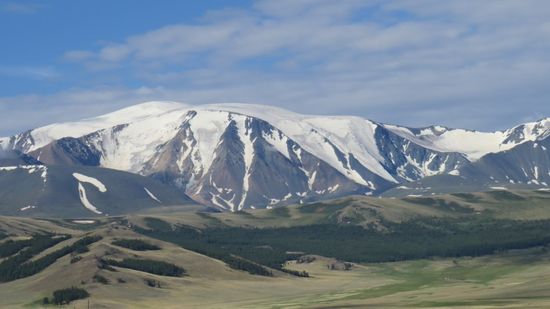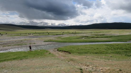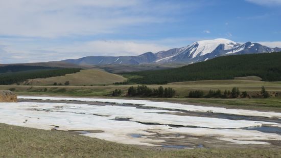 Der Mongun-Tayga (3976m) mit seinem Gletscher grüßt aus der Ferne,