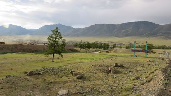 Am Stadtrand von Kyzyl werden wir diesmal bei strahlendem Sonnenschein vom Hirten droben auf’m Berg begrüßt,