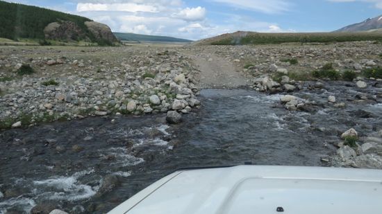 doch der Weg drüben endet an einer Felswand, ob da mal eine Jurte stand? Also wieder zurück und statt Wegweisern nun weiter dem Navi folgend Flussaufwärts gefahren, diesen kleinen Zufluss überquert