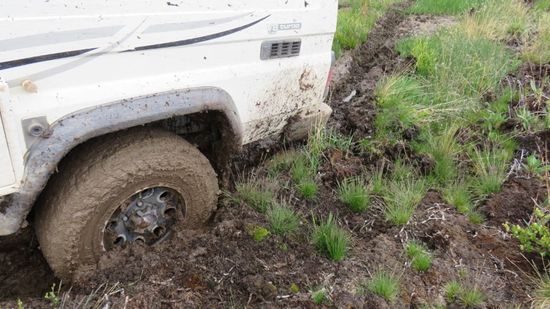 und es kommt, wie es kommen muss, we got bogged, wir stecken fest.