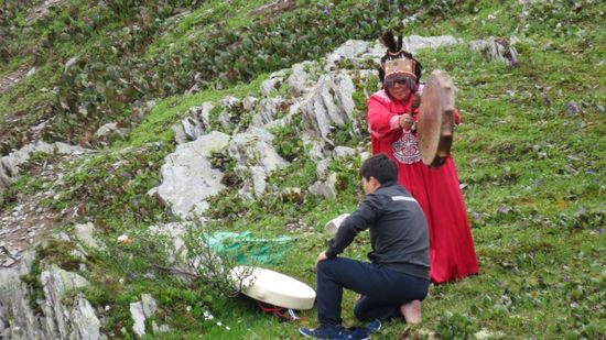 bis wir droben an einem Pass auf 2214m einer Schamanin bei ‘ihrer Tätigkeit’ zusehen können,