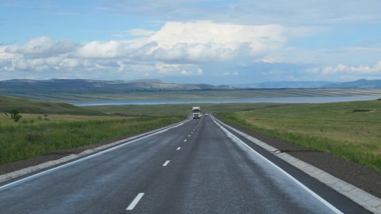 selbst die zahlreichen Plattenbau-Wohnsilos wirken irgendwie trostlos. Wir fahren die 80km wieder zurück bis kurz vor Chadan, um dort auf die P-257 (Enisej) Richtung Süden abzubiegen. Im Grenzgebiet zur Mongolei bereits alle paar km eine Jurte,