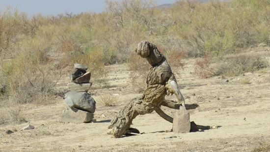 und schon geht es zurück, vorbei an dieser Skulptur aus Wüstenholz,
