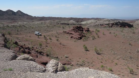 ein Gebiet aus verwitterndem rotem Sandstein ähnlich dem im Monument Valley, der dann aber stellenweise von einer meterdicken Schicht aus weissen, krümeligen Granit überdeckt ist. Ein alter Lavafluss???