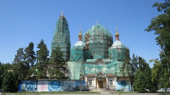 geht es zum Panfilov Park in dessen Mitte die riesige Zenkov Kathedrale steht, die aber wie so vieles hier derzeit renoviert wird.