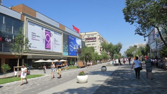 Durch die Zhibek Zholy FuZo, die an den Arbat in Moskau erinnern soll